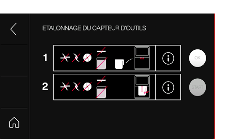 Étalonnage du capteur d’outils : Suivez les instructions affichées.
