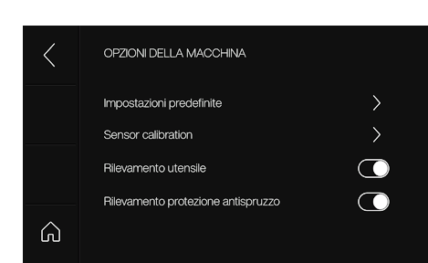 Nota: se non viene utilizzata per diversi minuti, la macchina passa in modalità standby. Il display è spento. Un LED bianco si accende a destra, sotto il touchscreen. Toccare il touchscreen per tornare nella modalità operativa. Il tempo di standby può essere modificato in "IMPOSTAZIONI".