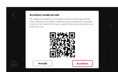 Nota: WiFi - accettare l'analisi dei dati (Analytics Policy) in Impostazioni, sotto WLAN, in modo da garantire una teleassistenza ottimale in caso di necessità.