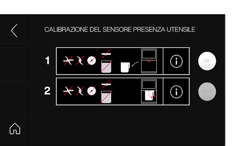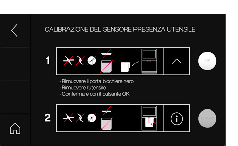 Calibrazione del sensore presenza utensile: nel caso di un errore di rilevamento, eseguire nuovamente la calibrazione del sensore presenza utensile.