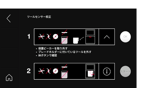 ツールセンサー校正: 画面に表示される手順に従って操作してください。