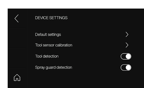 참고: 툴 및 스프레이 가드 감지가 켜져 있는지 확인하십시오. 이러한 기능은 장치의 작동 오류 및 손상을 방지합니다.