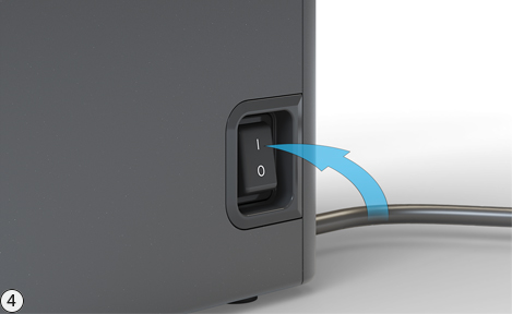 전원 케이블을 콘센트에 꽂습니다. 전원 스위치를 "I" 위치로 놓아 장치를 켭니다. 장치가 작동 모드로 전환됩니다.