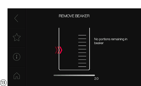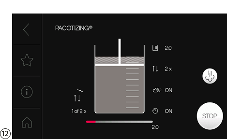 Pacotizing® 프로세스가 완료되면 디스플레이에 Pacotizing® 비커에 남아 있는 양이 표시됩니다.