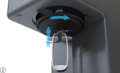 Pacotizing® 비커와 보호용 비커를 부착합니다. 보호용 비커가 제자리에 고정되면 제대로 장착된 것입니다.