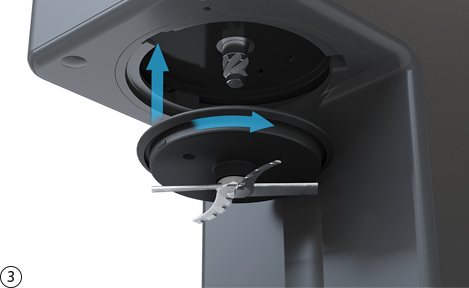 전문가 팁: 예비 스크레이퍼와 스프레이 가드에 PACOJET 라벨이 새롭게 부착되었습니다. 조립할 때는 두 로고가 모두 위를 향해야 합니다.