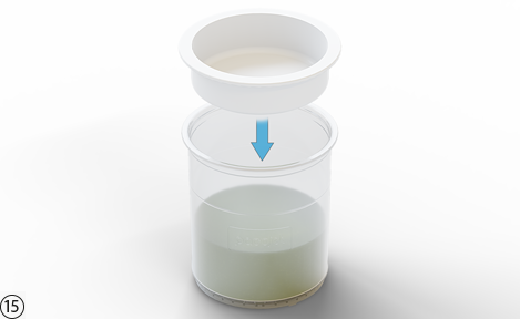 동봉된 비커 뚜껑으로 Pacotizing® 비커를 닫습니다.