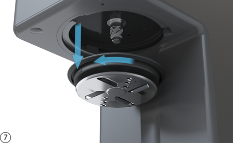 쿠페 세트 휘핑 디스크를 스프레이 가드에 삽입합니다.