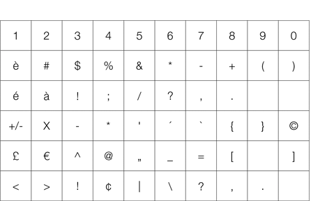WLAN(3): WLAN 비밀번호 및 즐겨찾기를 입력하는 데 사용할 수 있는 문자입니다.