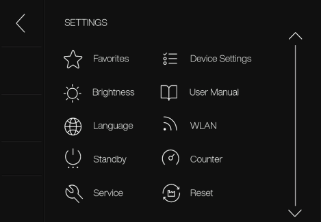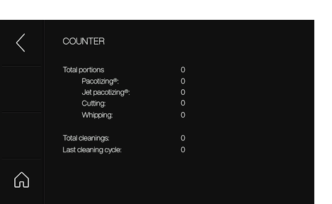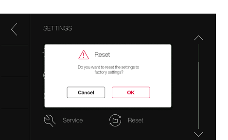 공장 초기화: 장치를 공장 설정으로 초기화하면 모든 데이터와 설정(예: 즐겨찾기)이 손실됩니다. 카운터와 이벤트 로그는 재설정되지 않습니다.