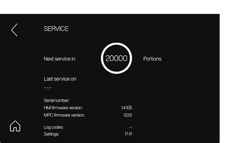 서비스: 다음 서비스까지 걸리는 시간, 마지막 서비스 날짜, 로그 데이터를 표시합니다. 펌웨어 버전이 표시됩니다.