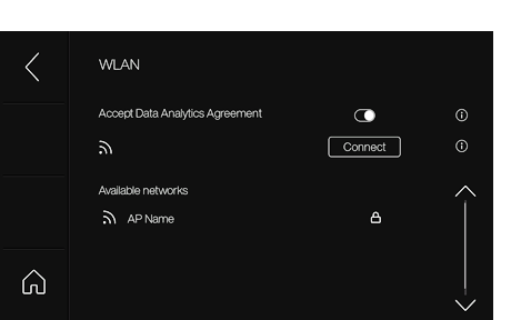 WLAN(2): 사용 가능한 WLAN 네트워크와 연결(Connect)을 표시합니다.