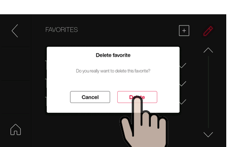 저장된 즐겨찾기는 Settings(설정) > Favorites(즐겨찾기)에 표시됩니다. 해당 매개변수는 레시피를 선택하여 편집할 수 있습니다.