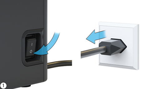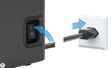 장치를 조심스럽게 똑바로 세웁니다. 장치의 플러그를 꽂고 전원을 켭니다.