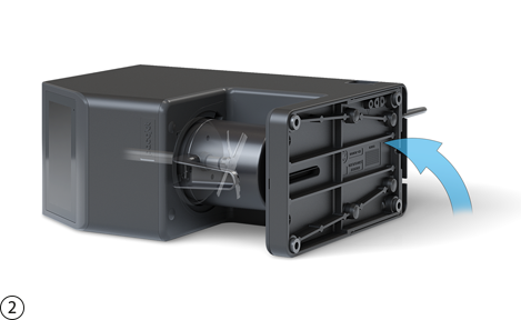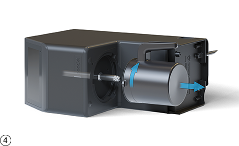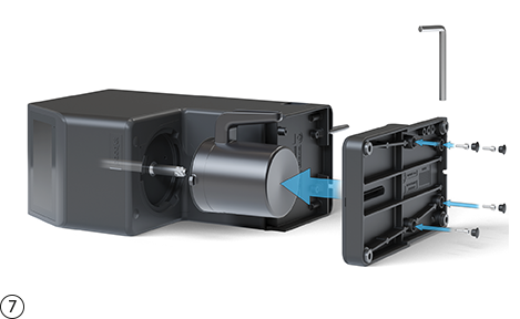 보호용 비커를 다시 부착합니다. 4개의 나사를 삽입하고 육각 렌치로 조여 베이스 플레이트를 부착합니다.