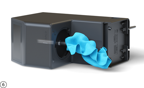 샤프트와 툴 커플러를 수건으로 닦습니다..